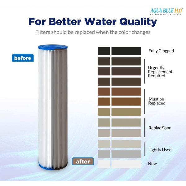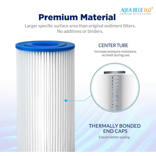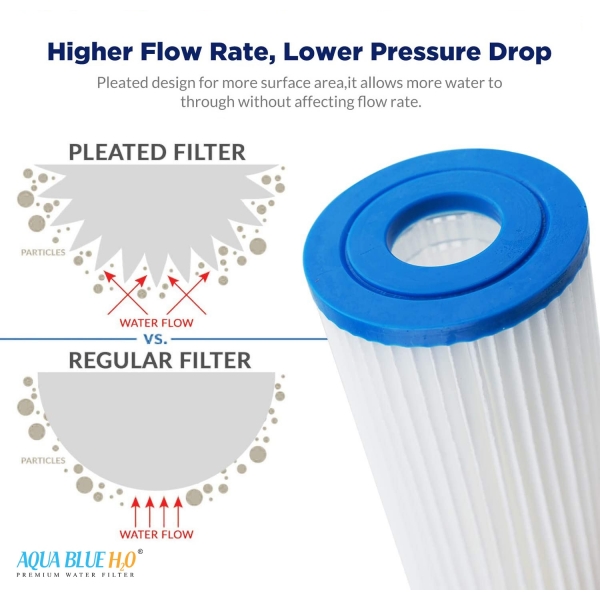 •          Why AQUA BLUE H20 Whole House Pleated Sediment Water Filter uses Advanced Trilobal Fabrication Technology, not only reducing particles, sediment, and other contaminants effectively but also easy to clean.